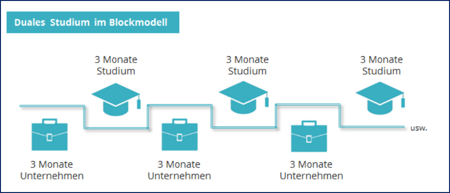 - Una ventaja básica del grado dual es que se puede poner en práctica directamente lo que se ha aprendido. De esta manera los estudiantes salen – después de un total de 3 años de carrera – con 1,5 años de experiencia laboral y así les será más fácil encontrar un empleo en el sector correspondiente. También existe la posibilidad de que la empresa les haga fijo al terminar la carrera.